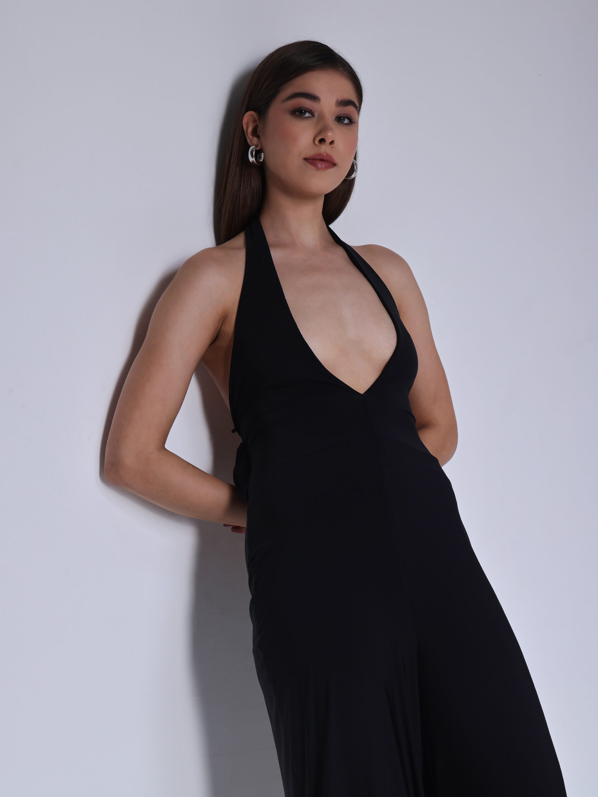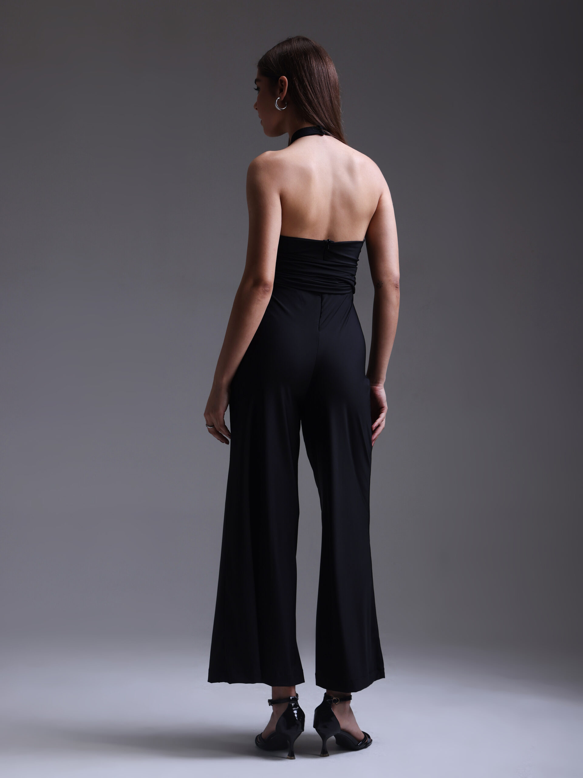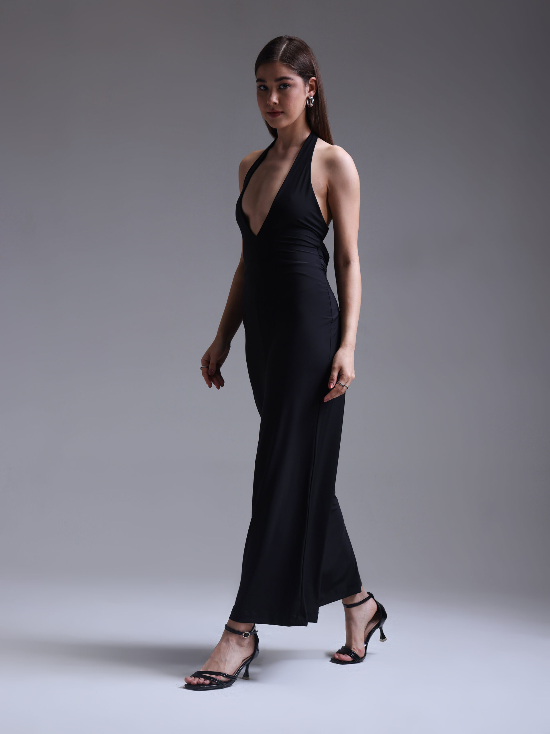 Designed with a plunging neckline and fluid wide-leg silhouette, this jumpsuit embodies modern femininity with a commanding edge.